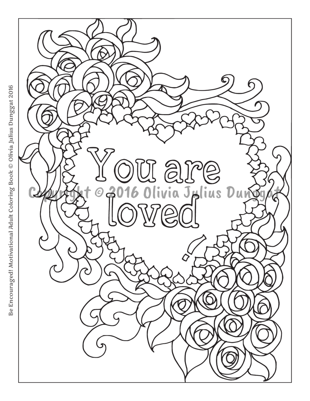 Be Encouraged! Motivational Adult Coloring page contains a whimsical hand drawn original design with short motivational quote for you to color. This coloring page is suitable for all skill levels.